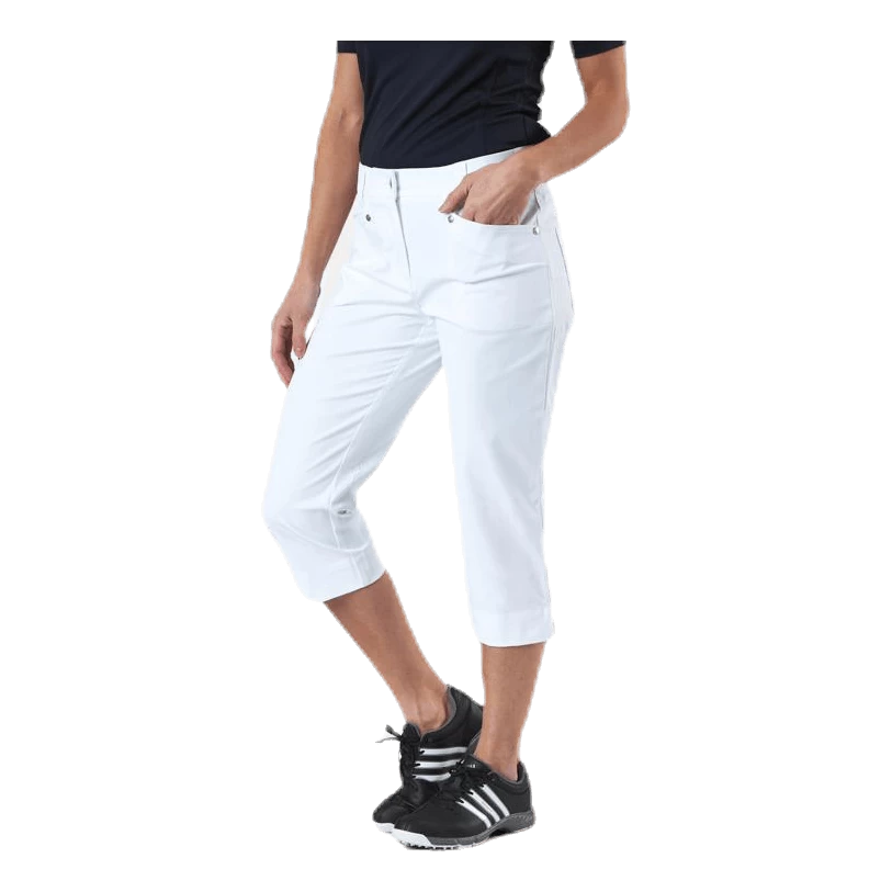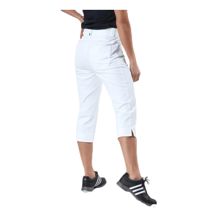 Lyric Capri Pant 74 cm is een nieuw model van langere golfshorts van stretchmateriaal. De broek komt tot onder de knie, heeft een elastische taille en is zowel sneldrogend als strijkvrij. Twee rechte zakken aan de voorkant en twee gebreide zakken aan de achterkant.
