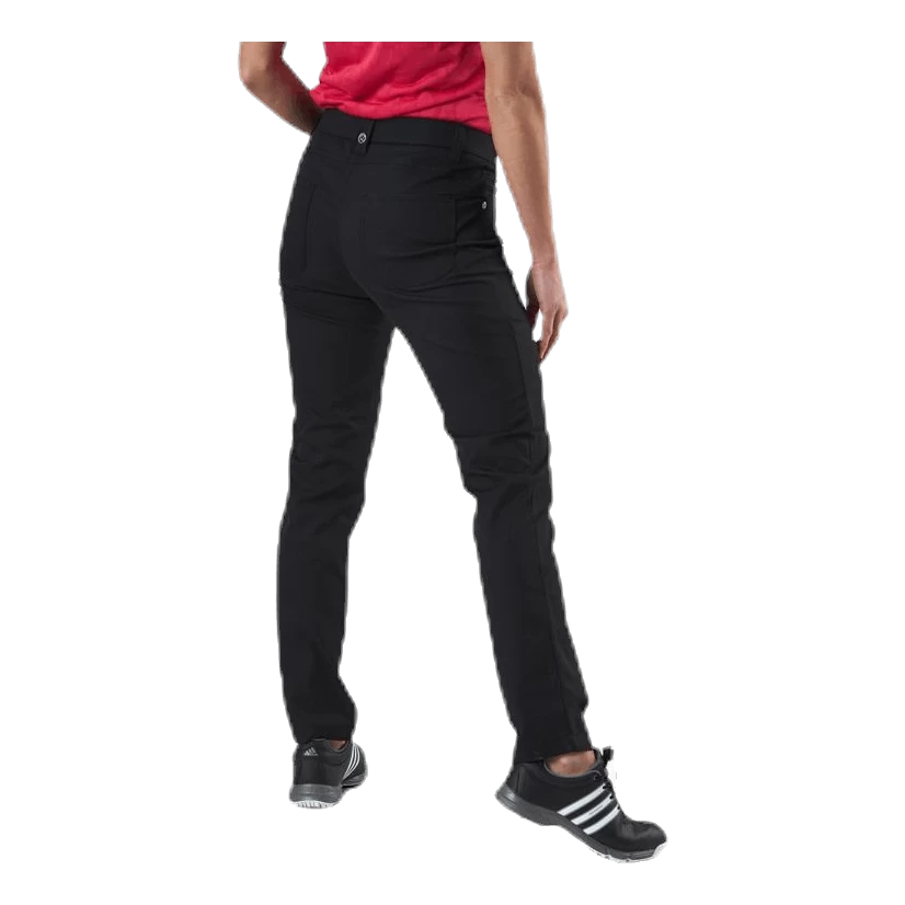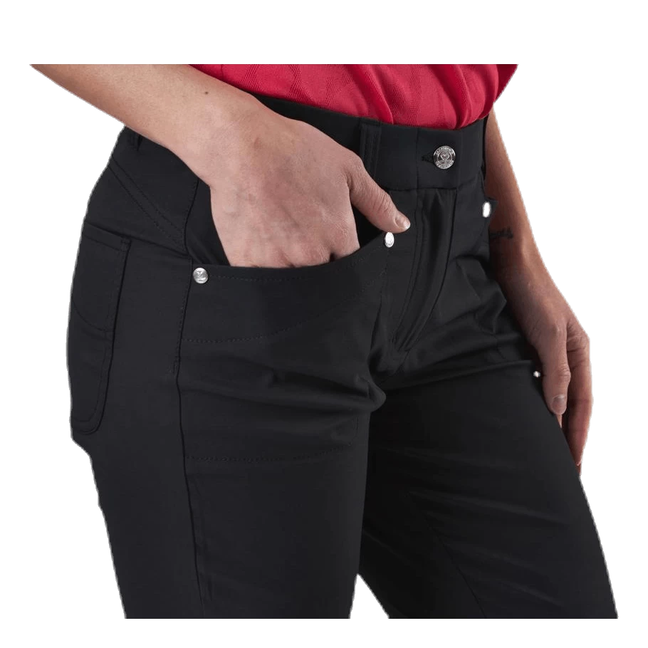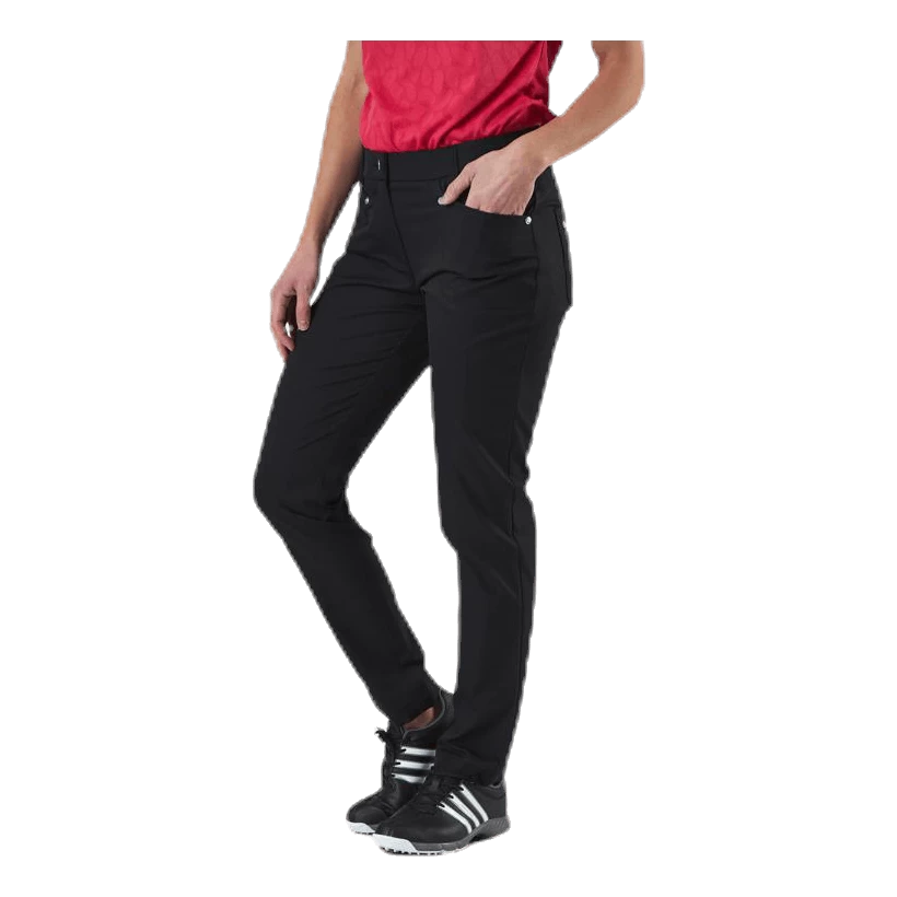 Lyric is onze bestverkochte broek die het net zo goed doet op de golfbaan als in de stad. De golfbroek is gemaakt van een kreukvrij, zacht en rekbaar materiaal waardoor je optimale bewegingsvrijheid hebt. De stof droogt snel en is wind- en waterafstotend. De tailleband is elastisch en sluit met een knoop en gulp. De broek heeft klassieke achterzakken en voorzakken met twee zilverkleurige klinknagels.