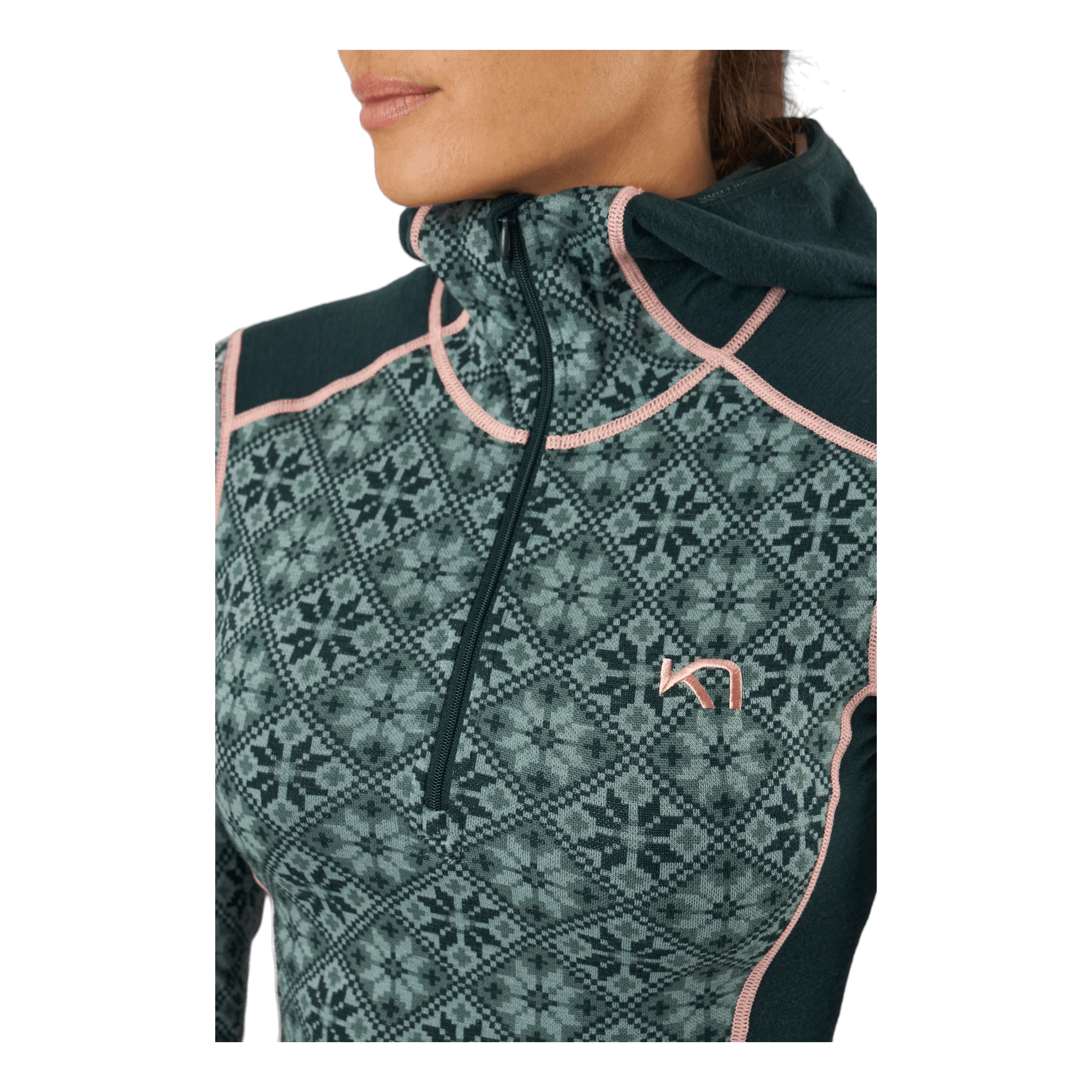 De Kari Traa Rose Hood is een basislaagtop van 100% merinowol met halve ritssluiting voor dames, een stijlvol, vrouwelijk, Scandinavisch geïnspireerd ontwerp en een slank, sportief silhouet. Door de combinatie van ethisch geproduceerde wol en 4-way stretch, krijg je ooh-factor naast huidcomfort, natuurlijke geurbestendigheid en ademend vermogen. Voel je de kou na het bestormen van een bergtop? Klap dan de slanke capuchon omhoog – hij past onder andere lagen. Een must-have. OEKO-TEX® 100-certificering betekent dat de hoofdstof geen schade toebrengt aan de menselijke gezondheid.