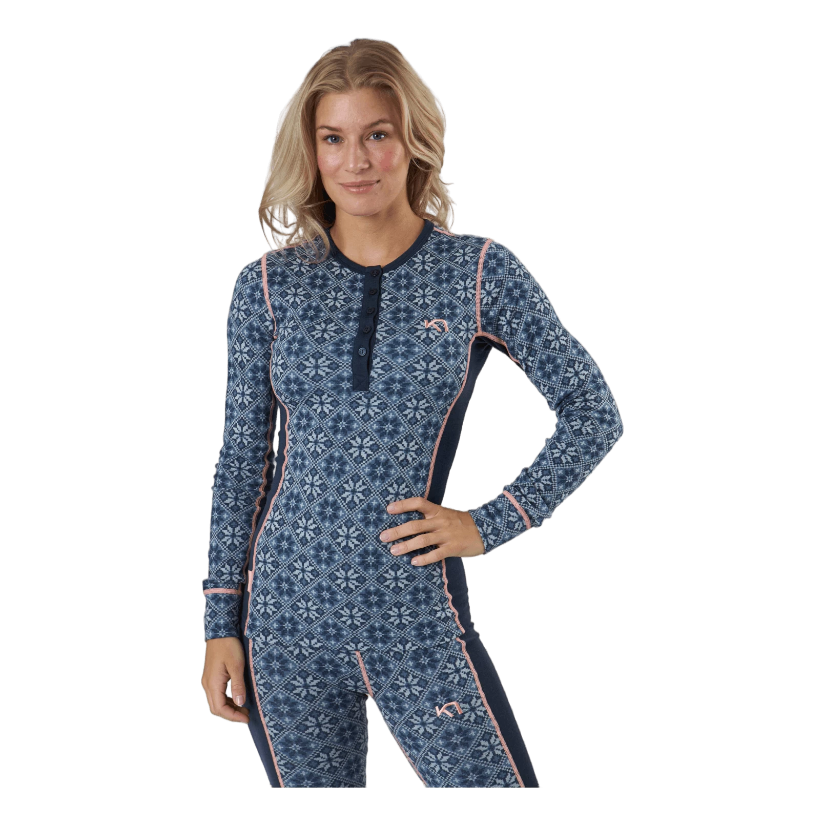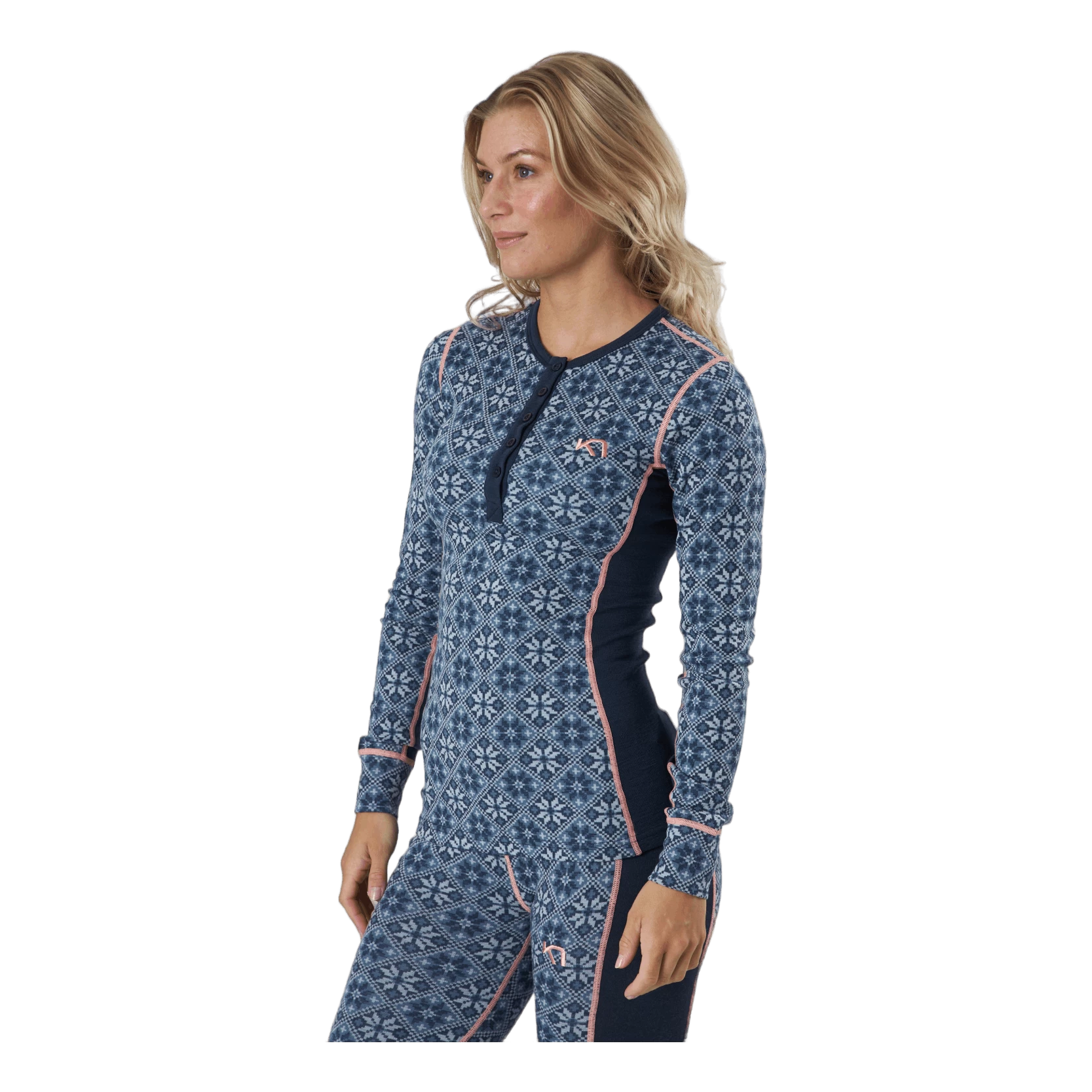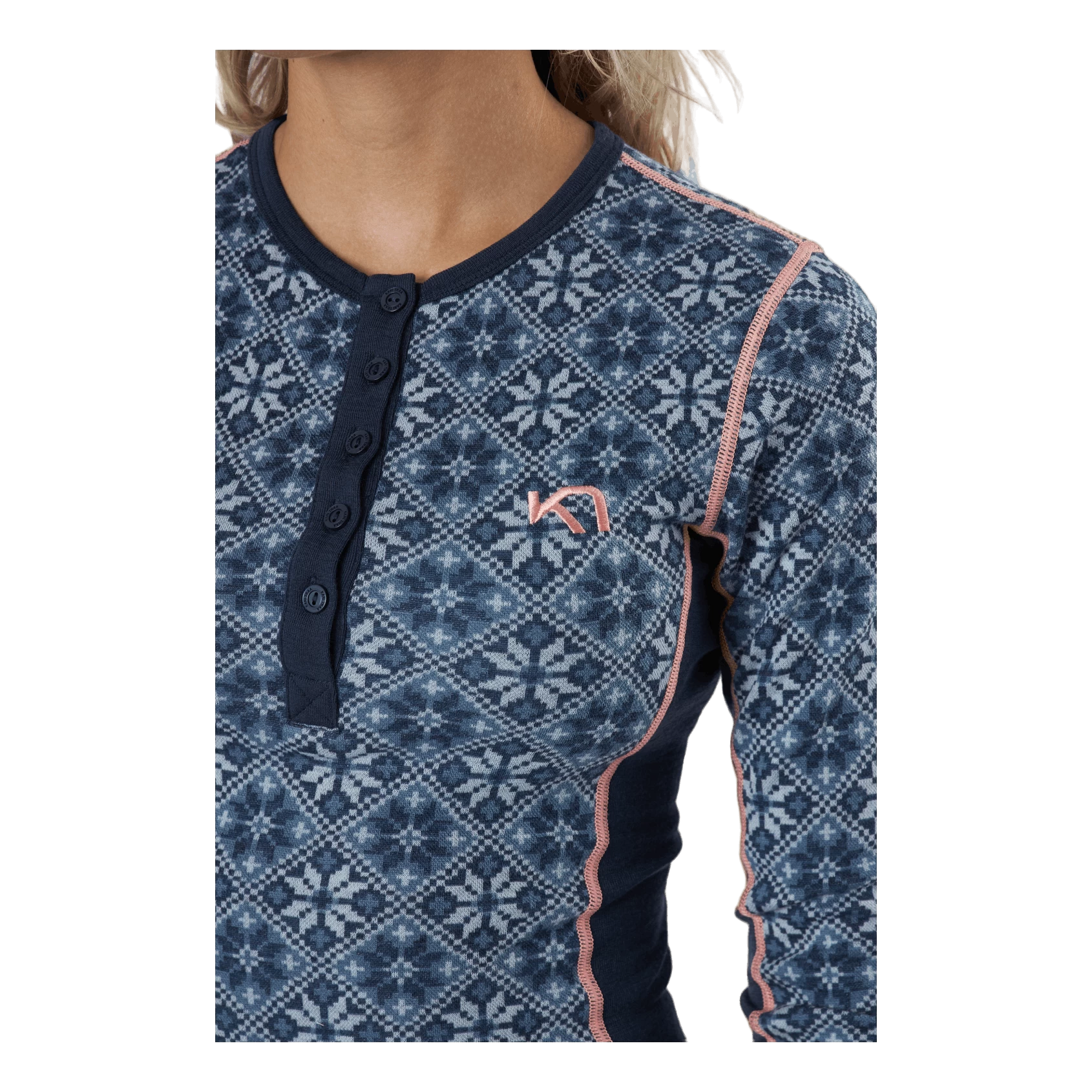 “De Kari Traa Rose Long Sleeve is een damesbasislaagtop van 100% merinowol met een vrouwelijk, Scandinavisch geïnspireerd design, een slank, sportief silhouet en een extra vleugje klassieke stijl. De combinatie van wol en 4-way stretch geeft je een oeh -factor naast huidcomfort, natuurlijke geurbestendigheid en ademend vermogen. Het rockt met een relaxte ronde hals en ouderwetse knoopsluiting in coole contrastkleuren. Een must-have.”