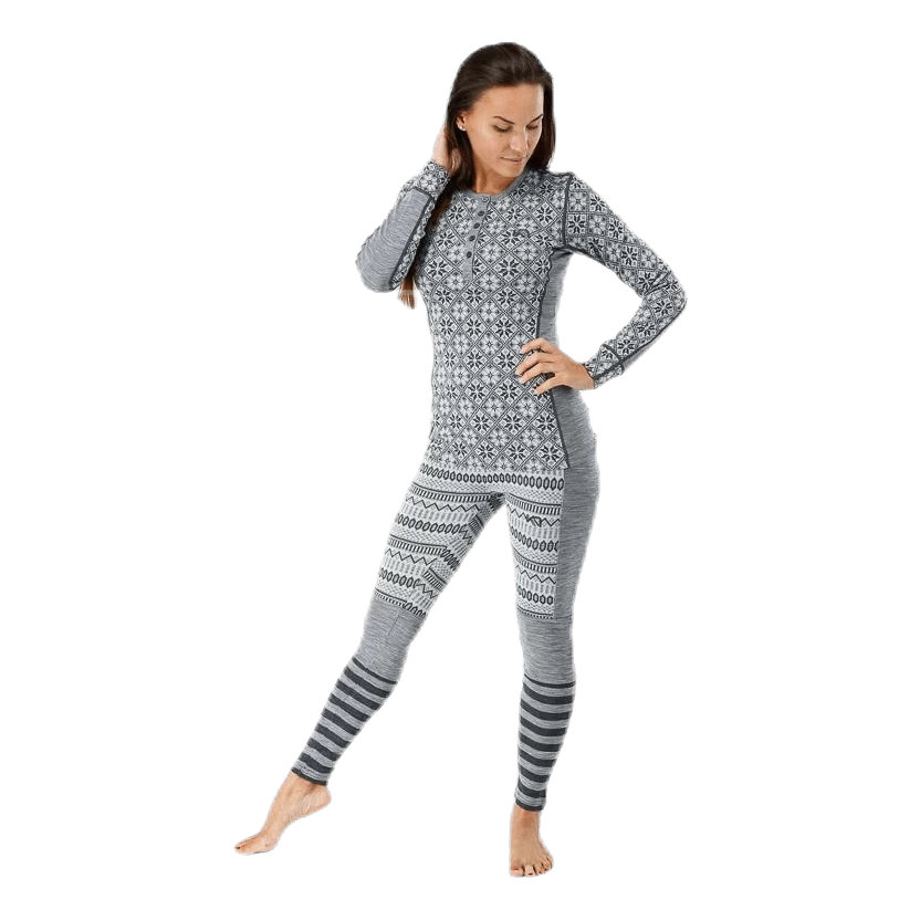“Kari Traa Rose is hét ondergoed voor de Scandinavische winter dat zorgt voor maximale warmte en perfect is om laagjes over laagjes te dragen op koude dagen. Rose LS heeft een klassiek, vrouwelijk design en is gemaakt van 100% superfijne merinowol met four-way stretch. Aangename huid, ademt goed en is bestand tegen nare geurtjes. Dunnere zijpanelen onder de armen en een stijlvolle opening met knopen aan de voorkant zorgen ervoor dat het kledingstuk beter ademt. Een ondergoed waar je niet zonder kunt. Hoofdmateriaal: 100% wol, Gewicht : 240 g / m2, Vezel: 19,5 micron, Contraststof: 100% wol, Gewicht: 210 g / m2, Vezel: 19,5 micron Alleen trui, broek worden apart gekocht.