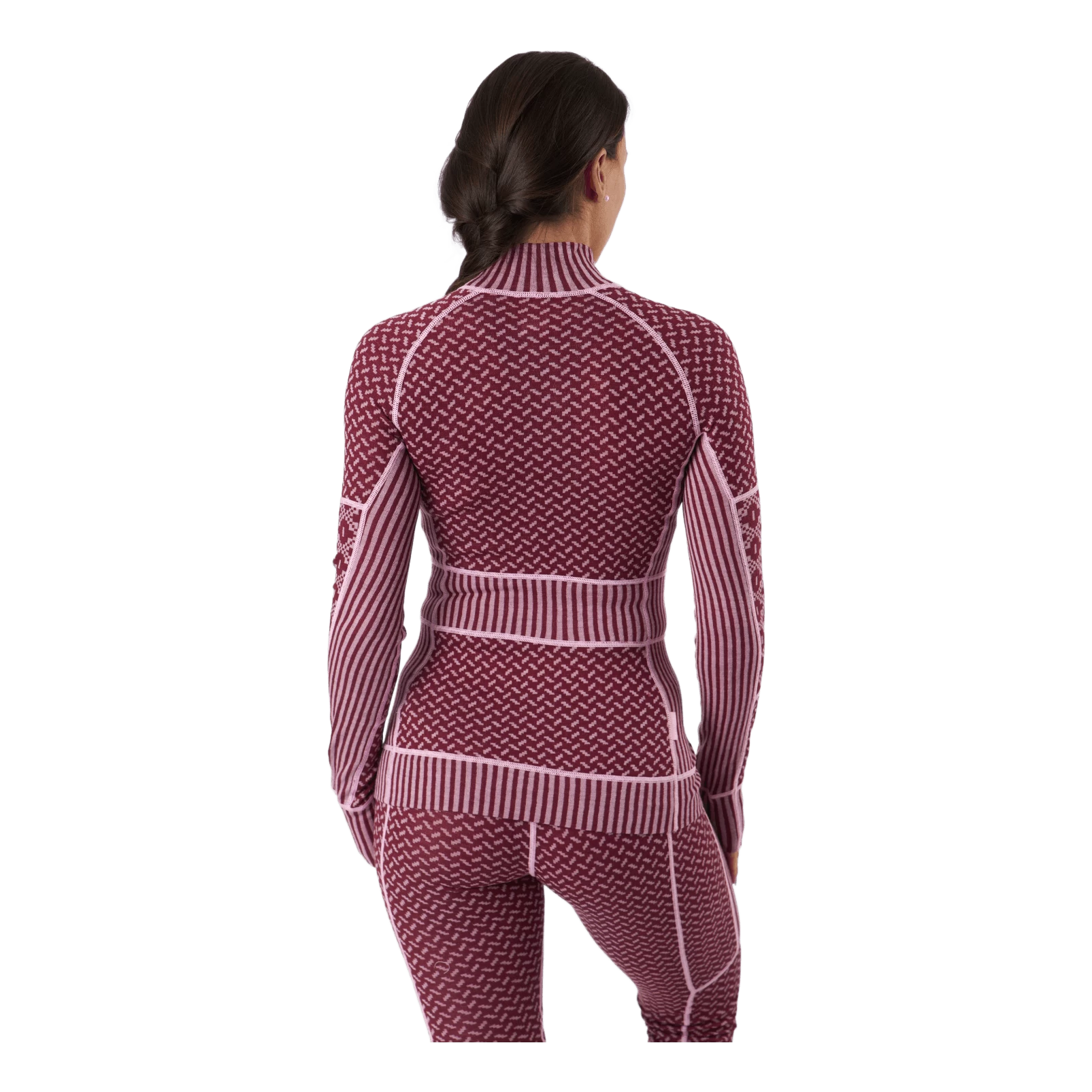 “De Kari Traa Smekker Half-Zip is een lichtgewicht basislaagtop van 100% merinowol voor dames. Natuurlijk ademend en geurbestendig, wol houdt je warm, of het nu nat of droog is en voelt geweldig aan op je huid. Flatlocknaden verhogen het comfortniveau wanneer je het vuur hoger zet. En als het te warm wordt, kun je de hoge kraag naar beneden ritsen. Panelen van Jacquard-gebreide patronen in verschillende intensiteiten creëren flatterende lijnen. “