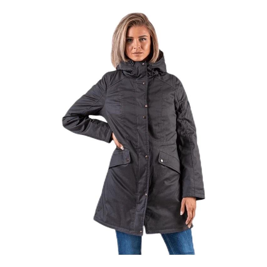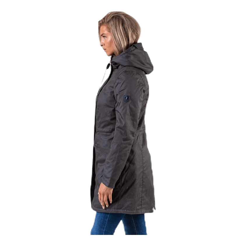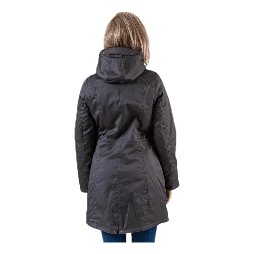 Deze parka is gemaakt van gewaxt canvas en heeft een taille met trekkoord. De afneembare capuchon is gevoerd met imitatiebont. 97% katoen 3% spandex.