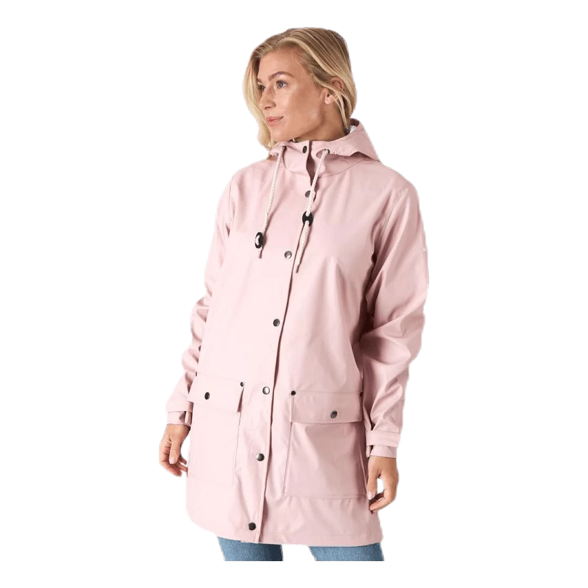 Dit is een dunne en stijlvolle regenjas voor dames, gemaakt van 100% polyester met waterdichte coating aan de buitenkant. Met een waterkolom van 10.000 mm en gelaste naden is de jas 100 procent waterdicht. De pasvorm van de jas is recht en afgedicht met drukknopen, en heeft twee open zijzakken. De capuchon is verstelbaar met een trekkoord voor een optimale pasvorm. Het witte trekkoord met leren details geeft de jas een navy look. Dit is de perfecte jas voor alle regenachtige dagen van het jaar, hondenwandelingen in de motregen of bus in de speeltuin met de kinderen.