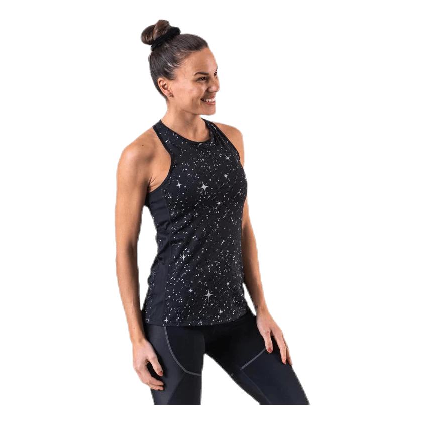 De Nike Pro Tank wordt geleverd met een langere zoom, hogere kraag en worstelaarrug voor meer bewegingsvrijheid. Het consistente sterrenpatroon in metallic glans past perfect bij bijpassende Nike Pro shorts en panty’s.