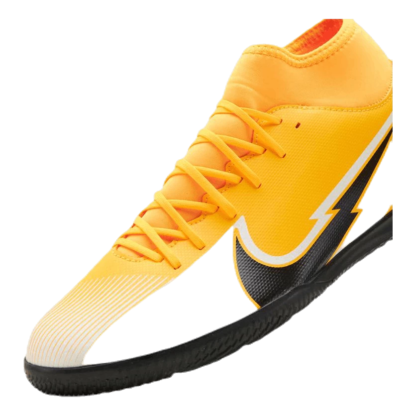 De Nike Mercurial Superfly 7 Club IC heeft een laag profiel Dynamic Fit kraag die je enkel omhult voor een gesloten gevoel in het veld. Het bovenwerk heeft een microtextuur voor nauwkeurige controle, terwijl de rubberen buitenzool de tractie op het circuit of op straat verbetert.
