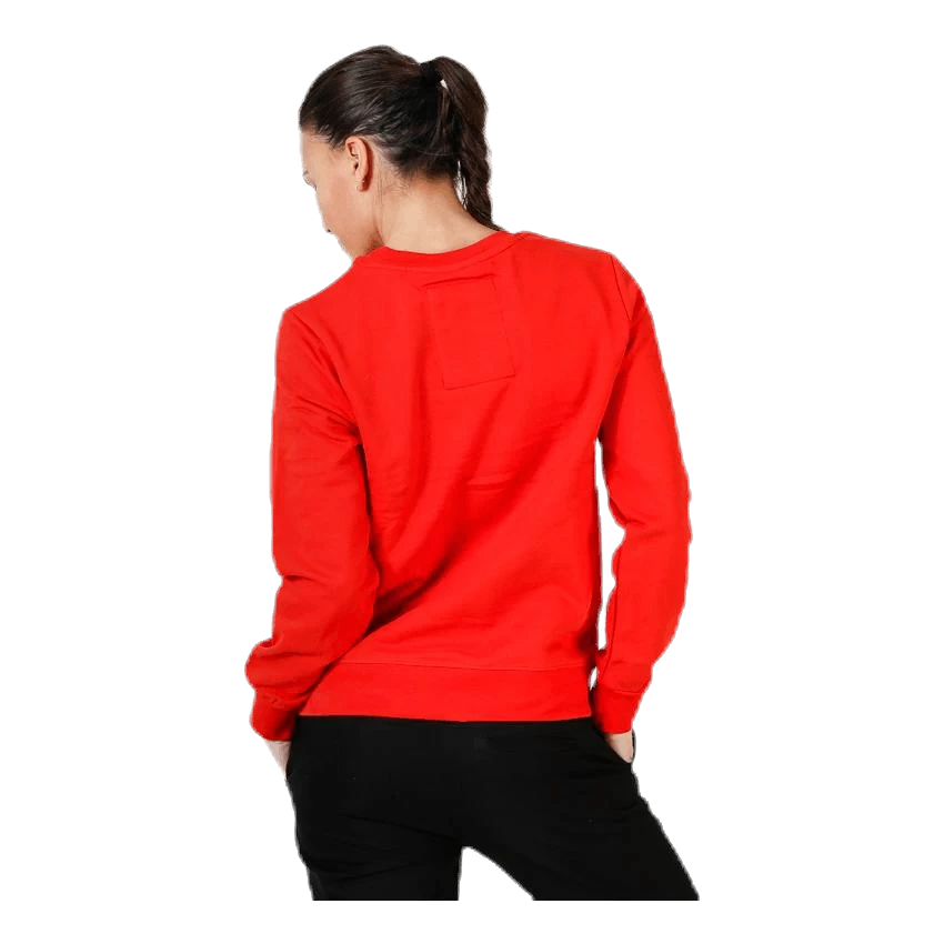 Olivia Crew heeft een mooie pasvorm met een ronde halslijn en een grote geborduurde svea-vlag midden op de borst. Ribgebreide zoom en ribgebreide manchetten aan de manchetten.