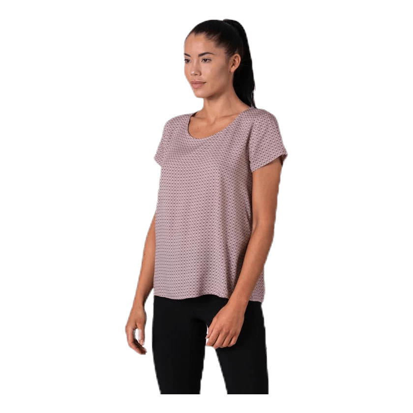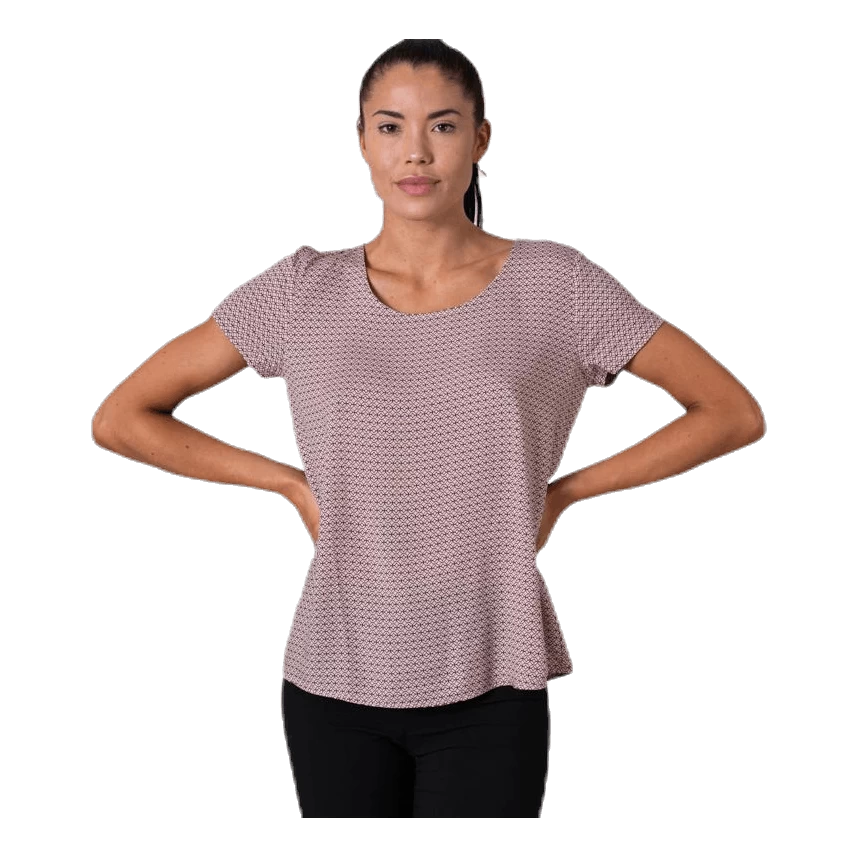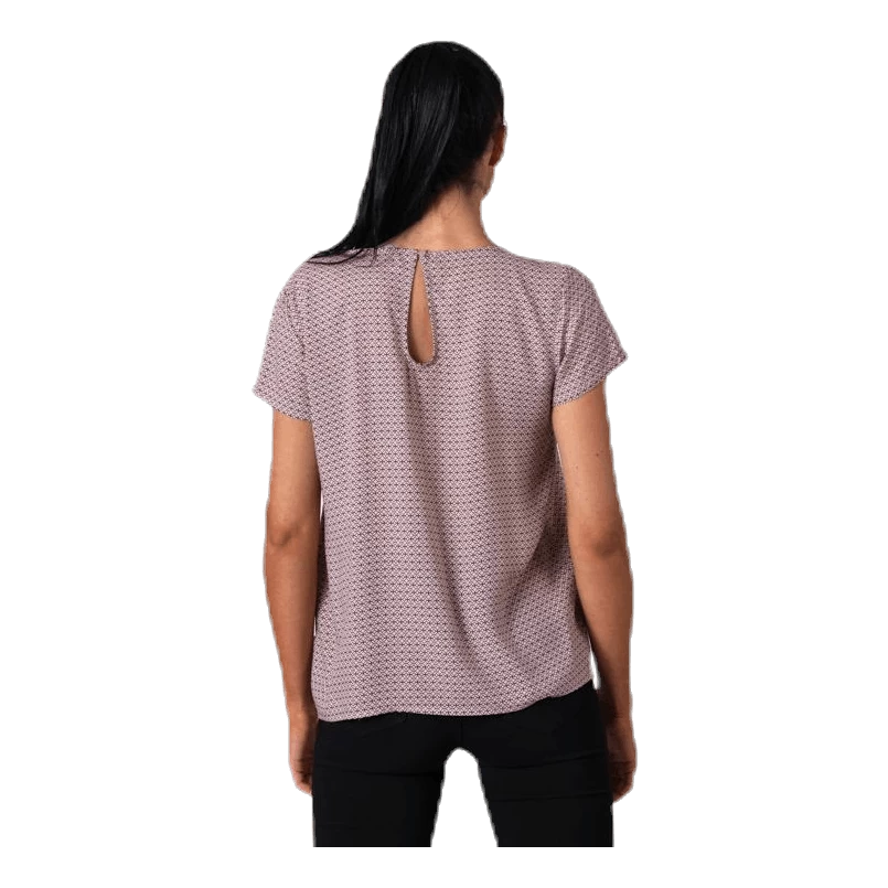 De First One Ss Aop Top is een slim-fit blouse met korte mouwen, een gerimpeld detail op de schouders en een strikband aan de voorkant.