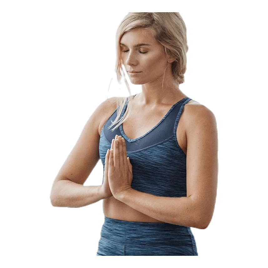 Gewatteerde sportbeha met lage ondersteuning, aangepast voor yoga en andere vormen van lichaamsbeweging. Gekruiste bandjes op de rug voor goede stabiliteit en v-hals aan de voorkant met een mooi mesh detail. Logoprint midden op de rug in bijpassende kleur. Gewatteerd.