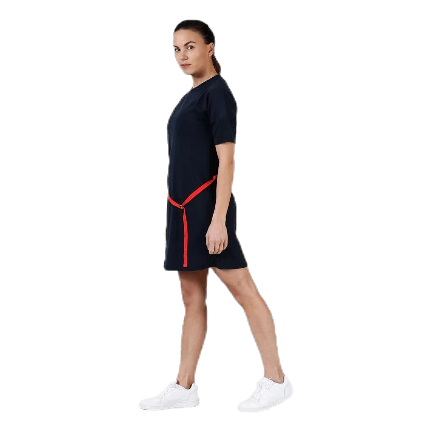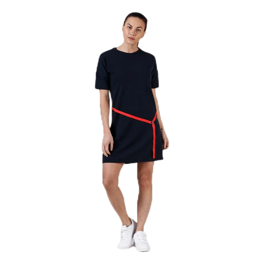 Zomerjurk in marine thema met riem in contrasterende kleur
