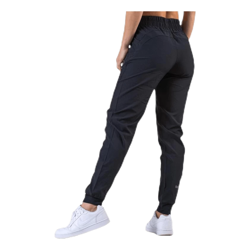 4-way stretch geweven hardloopbroek met zijzakken met rits, rugpas, trekkoord aan de binnenkant en zilveren reflecterende print